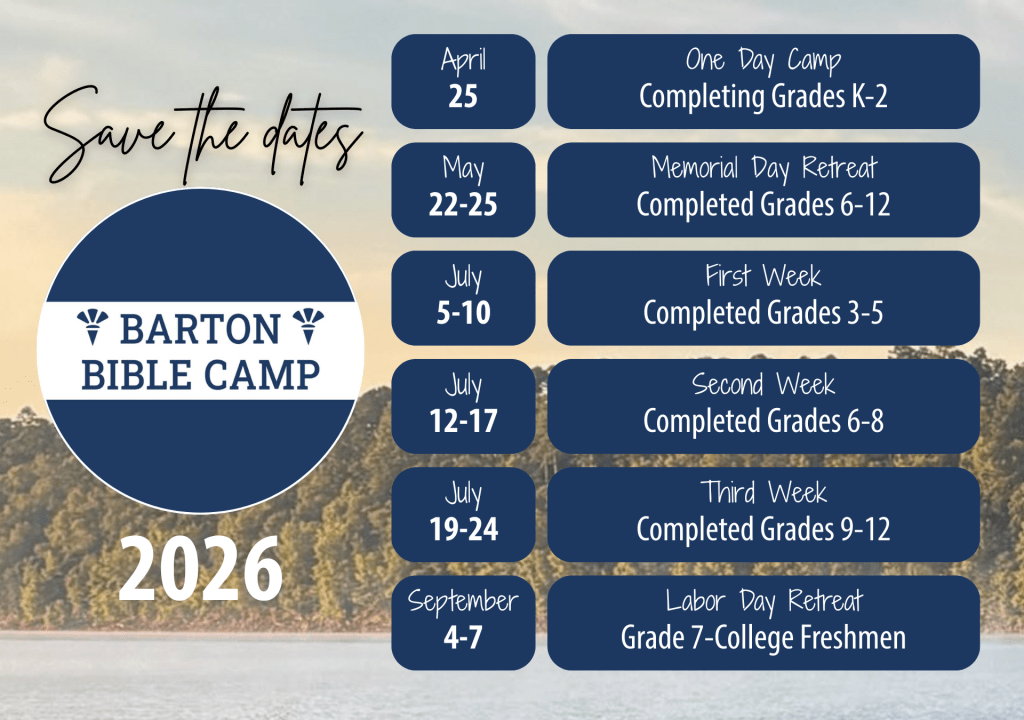 Barton Bible Camp is a youth summer camp overseen by the elders of the Murfreesboro Church of Christ. Faithful members of this congregation and others in the area have been working with area youth since 1973 to help cultivate relationships with the Lord and one another. We have five regular sessions each spring/summer which will kick off in May. We’d love to show you what Barton is all about, so click the Register link at the top to get started!